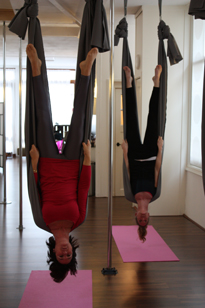 Vooral de omgekeerde houdingen kunnen heel heilzaam zijn voor het lichaam. Als je bij Aerial Yoga ondersteboven hangt kun je de zwaartekracht in je voordeel laten werken. De wervels van de rug krijgen zo meer ruimte en de spieren kunnen zich helemaal ontspannen. Dit zorgt weer voor een betere doorbloeding en meer ontspanning. Ook de liezen kunnen door de houdingen in het doek weer een boost krijgen.